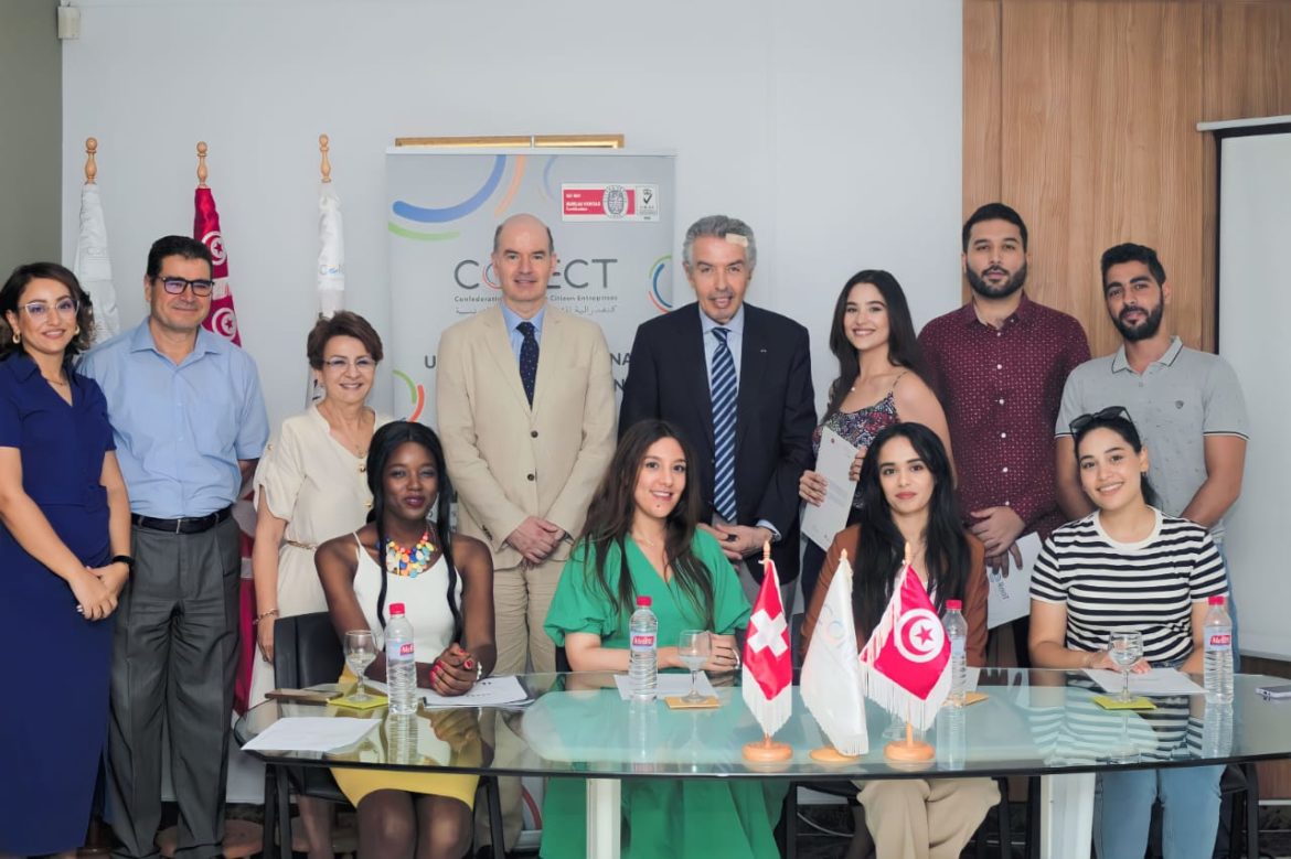 La cรฉrรฉmonie de remise de certificats des jeunes diplรดmรฉs de la CONECTโee promotion 2022 sโest dรฉroulรฉe le vendredi 21 juillet 2023 au siรจge de la CONECT en prรฉsence de son Excellence M. Joseph RENGGLI , Ambassadeur de la Confรฉdรฉration Suisse en Tunisie et M. Hamda ZERAMDINI, Directeur Swisscontact.