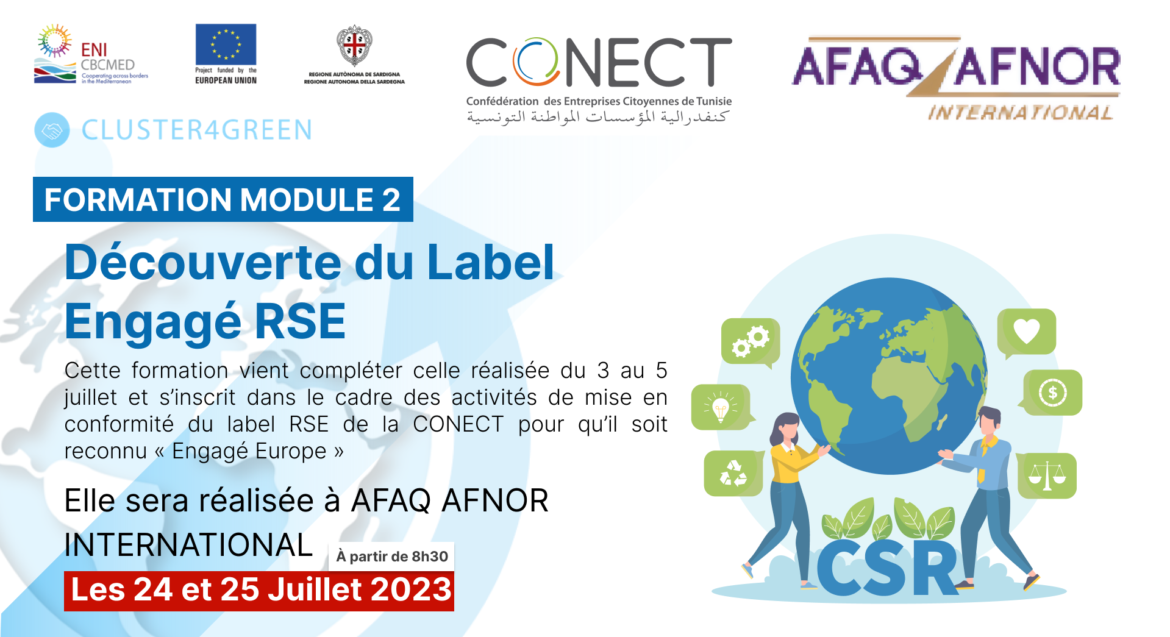 Cette formation vient en complément de celle réalisée du 3 au 5 juillet et s’inscrit dans le cadre des activités visant à mettre en conformité le label RSE de la CONECT, afin qu’il soit reconnu « Engagé Europe »🇪🇺