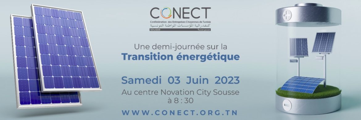 Le régional CONECT Sousse en partenariat avec le groupement des Producteurs Indépendants d’Énergie Électrique à partir des énergies renouvelables de capacité ≥ 1 MW, vous invite à une demi-journée autour de la transition énergétique.