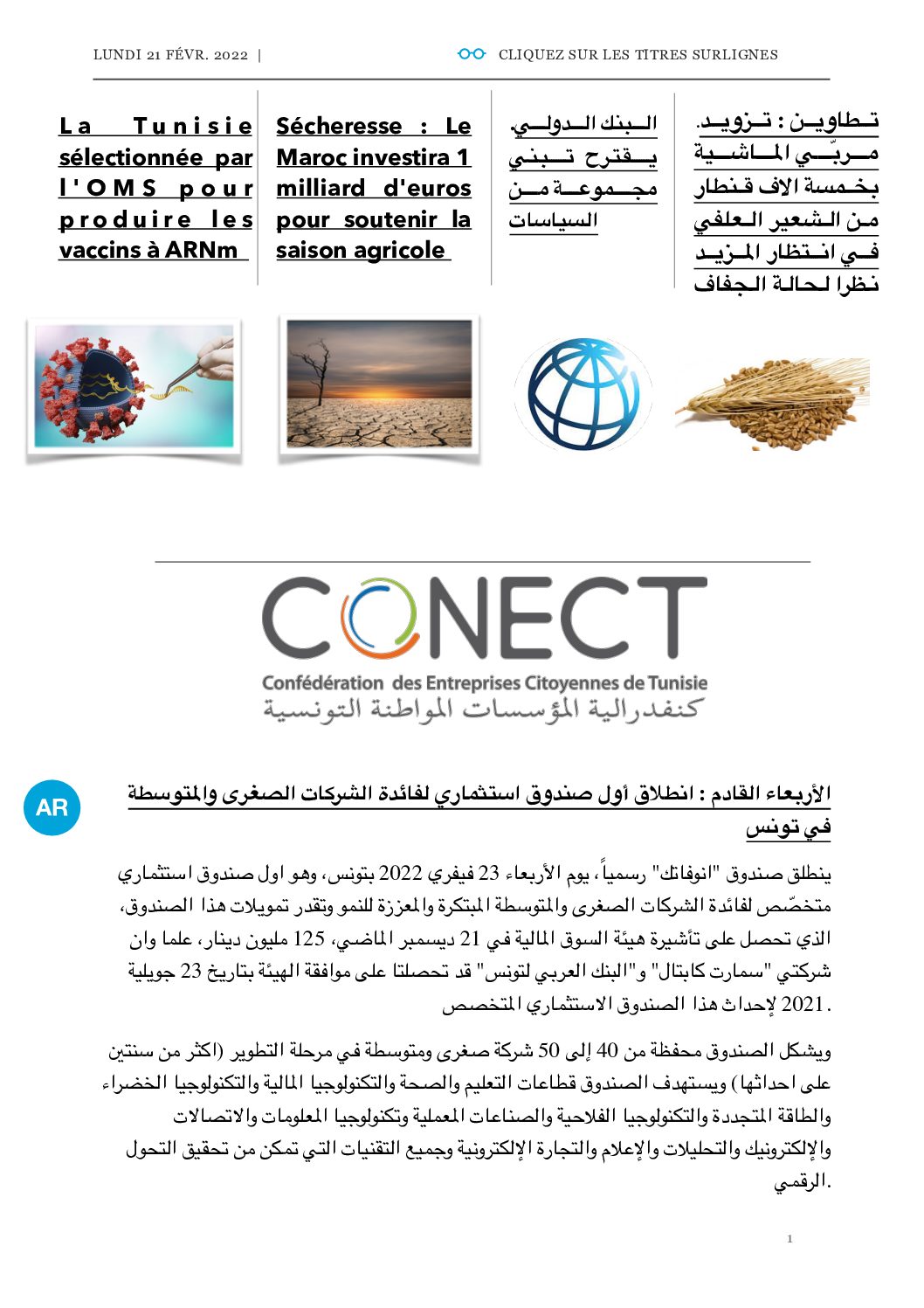 REVUE DE PRESSE LUNDI 21.02.2022 by webmasterconect 17 July 2022 Télécharger le PDF 0 Comment 0 FacebookTwitterLinkedin webmasterconect Previous articles REVUE DE PRESSE VENDREDI 18.02.2022 Next articles REVUE DE PRESSE MARDI 22.02.2022