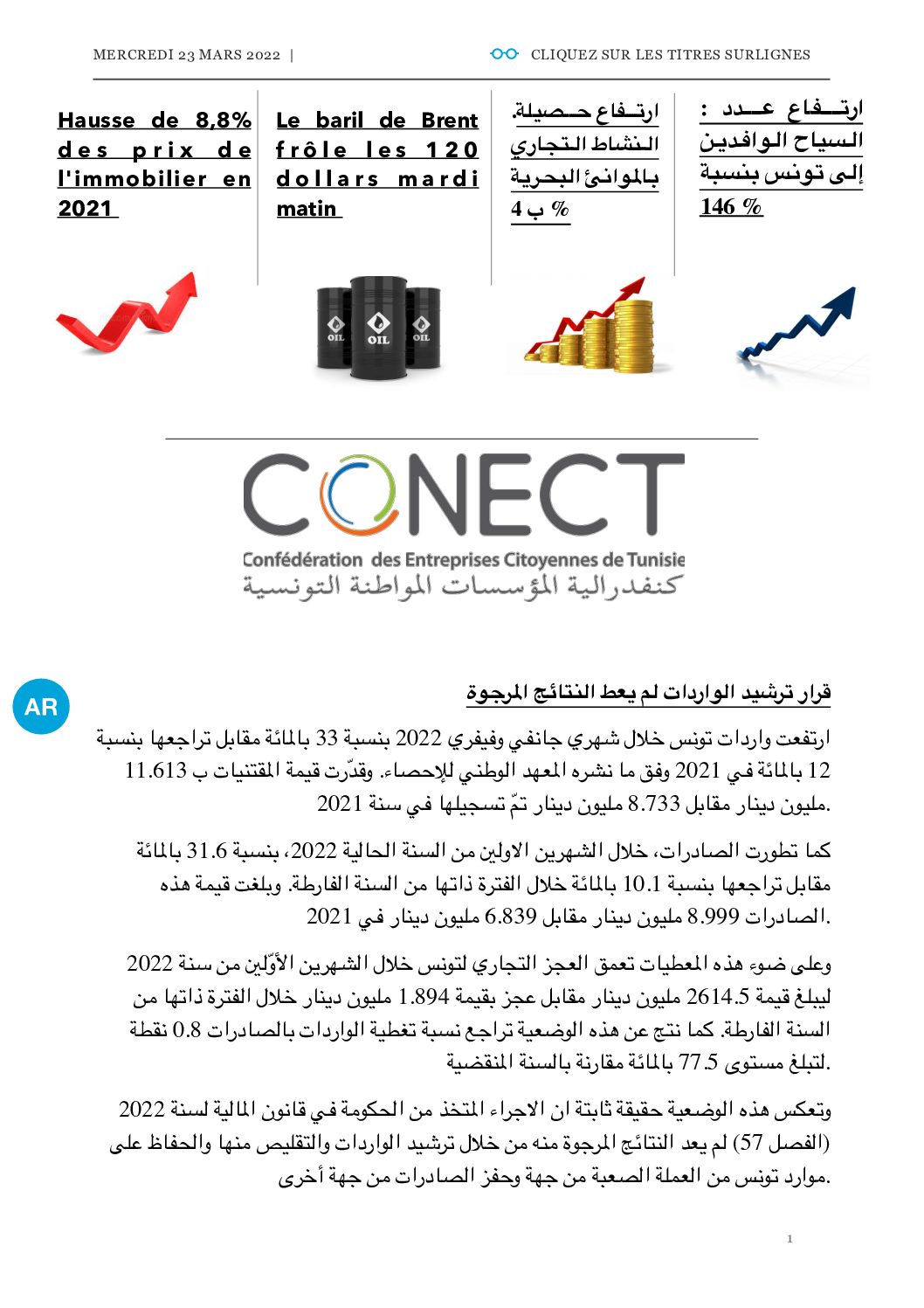REVUE DE PRESSE MERCREDI 23.03.2022 by webmasterconect 18 July 2022 Télécharger le PDF 0 Comment 0 FacebookTwitterLinkedin webmasterconect Previous articles REVUE DE PRESSE MARDI 22.03.2022 Next articles REVUE DE PRESSE JEUDI 24.03.2022