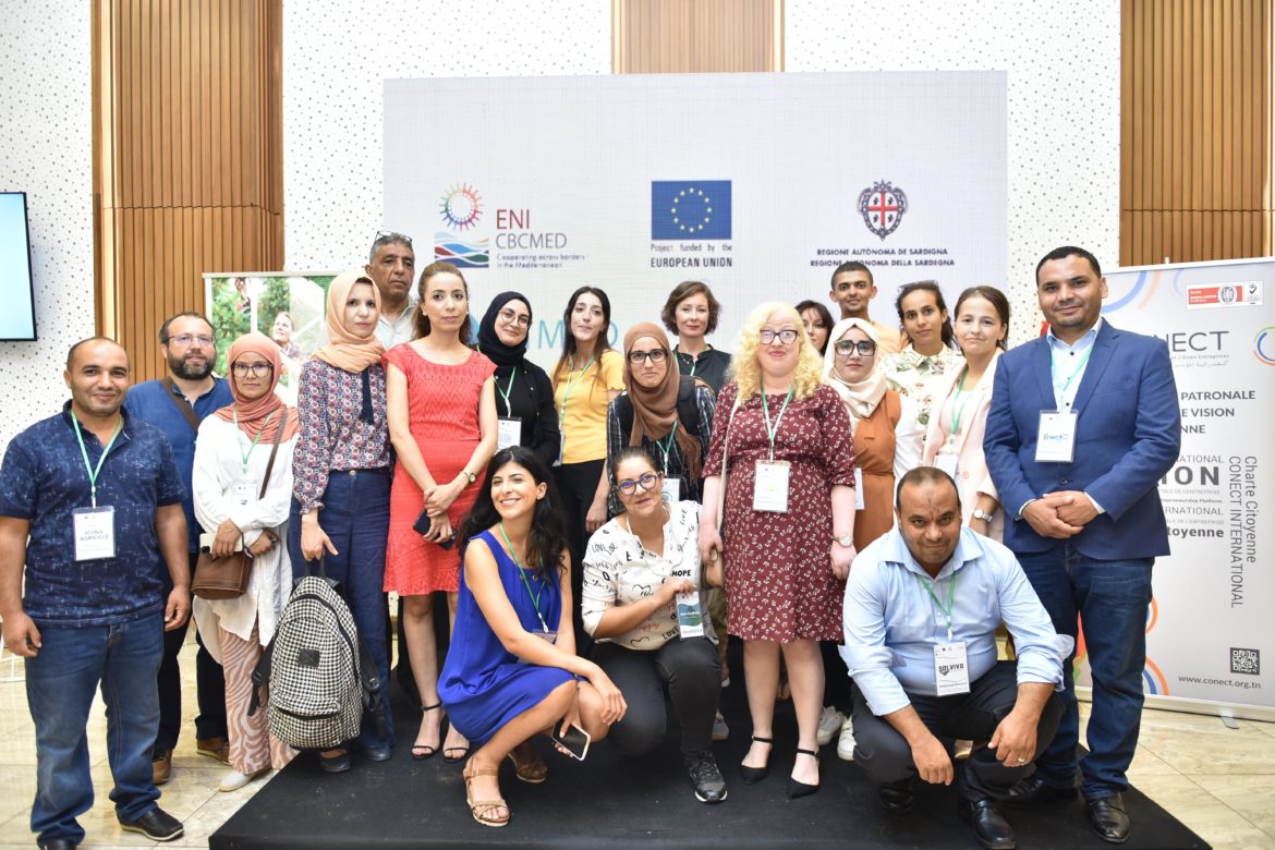 As part of GIMED, the Confederation of Citizen Enterprises of Tunisia (CONECT) organized on September 14 and 15, 2022 a ‘Pitching Event‘ and a ‘Networking Event‘ on the sidelines of the meeting of the 6th Steering Committee of GIMED project, held in Tunis in the presence of partners from the 6 member countries: MedWaves, the UNEP/MAP Regional Activity Center for SCP (former SCP/RAC) in Spain, Berytech Foundation in Lebanon, Leaders Organization in Palestine, Alexandria Business Association in Egypt, Fondazione Comunità di Messina in Italy and CONECT in Tunisia.