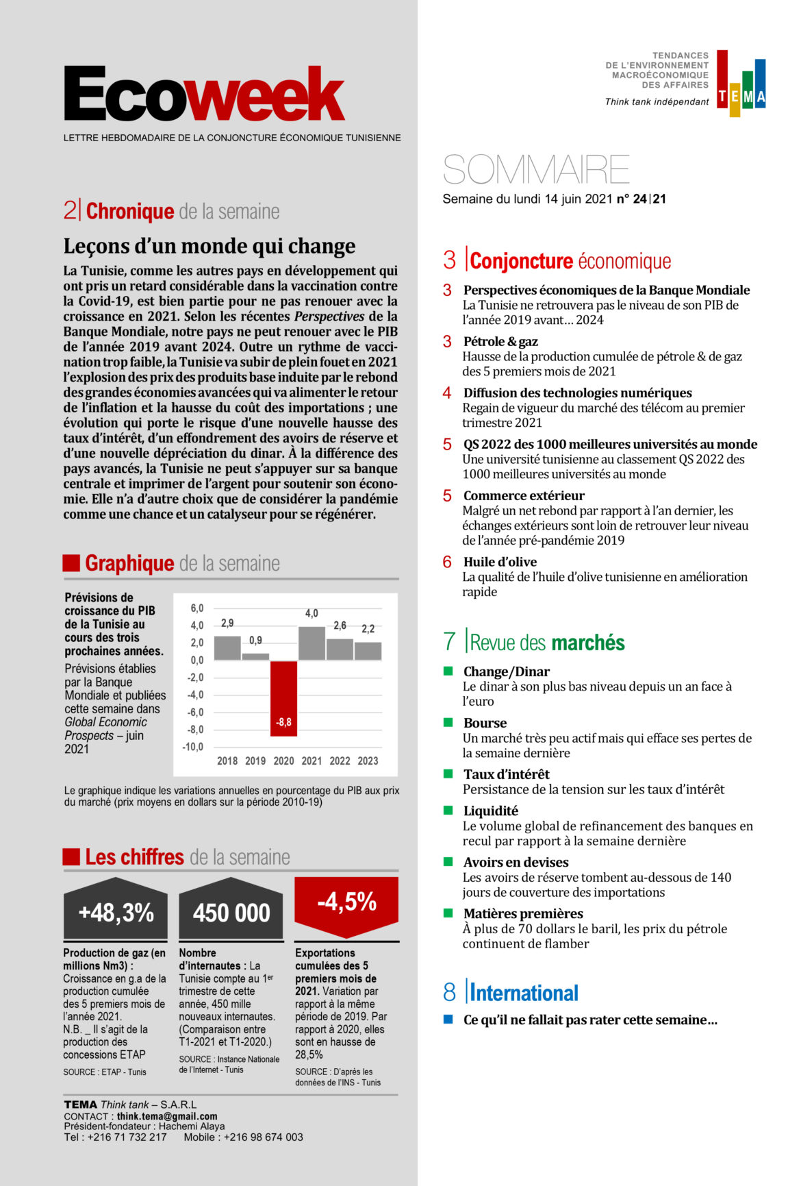 LETTRE HEBDOMADAIRE DE LA CONJONCTURE ÉCONOMIQUE TUNISIENNE by conect2022mtd 7 mars 2022 0 Commentaire 0 FacebookTwitterLinkedin conect2022mtd Articles précedent la presse de la Tunisie du lundi 14 juin 2021 Articles suivant مقترح القانون المتعلق بتعديل أحكام الشيك دون رصيد: المقترحات والانعكاسات بين داعم ورافض
