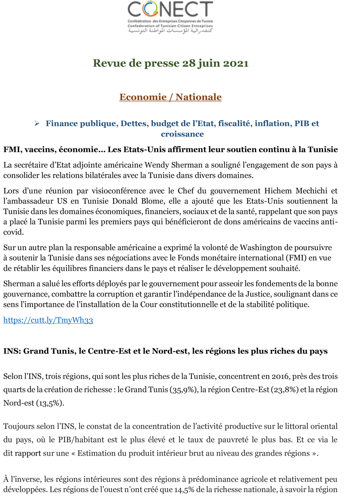 Revue de presse 28 juin 2021 by conect2022mtd 7 mars 2022 0 Commentaire 0 FacebookTwitterLinkedin conect2022mtd Articles précedent مشروع مراجعة تراخيص تعاطي األنشطة االقتصادية Articles suivant Revue de presse Lundi 28 juin 2021