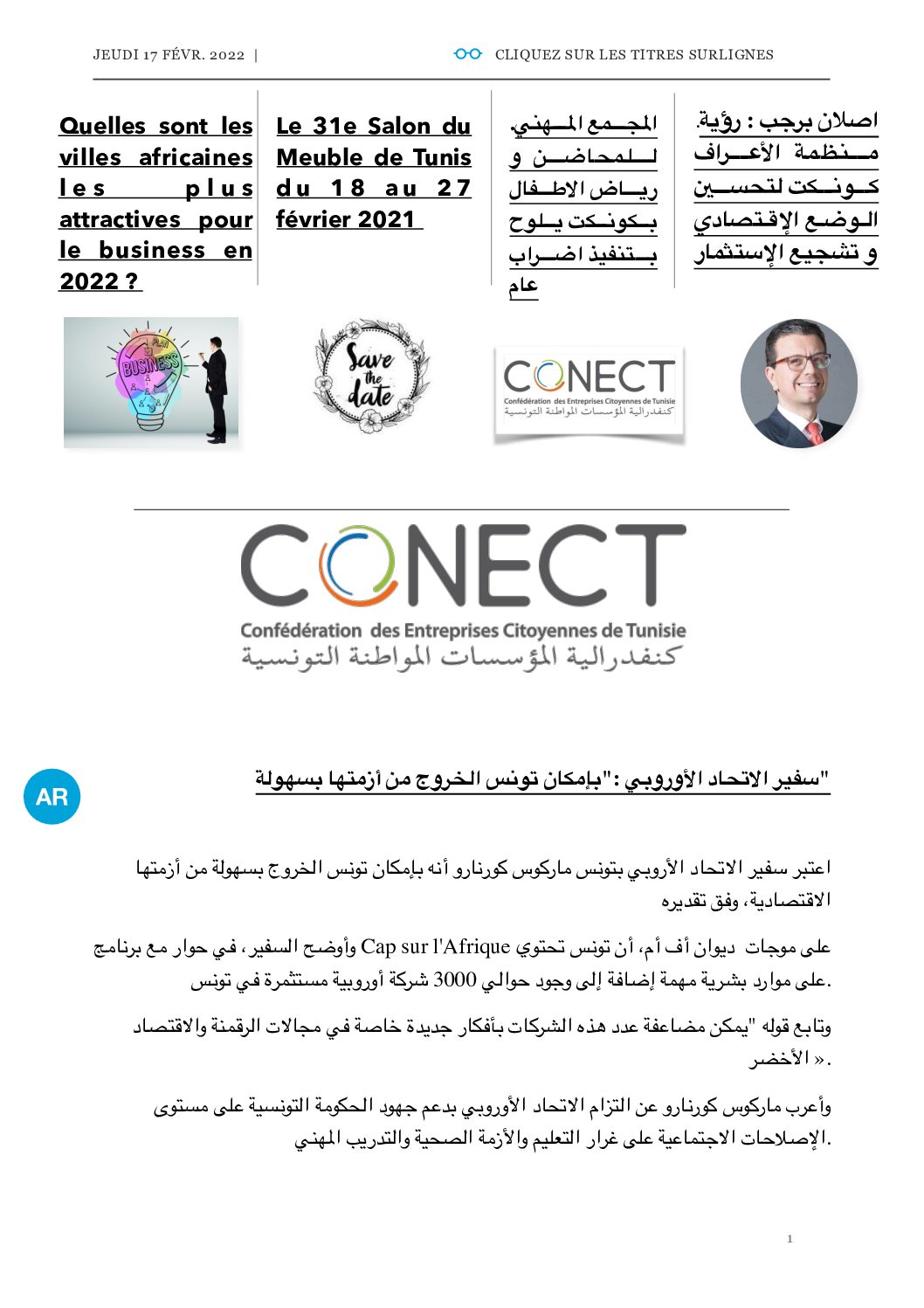 REVUE DE PRESSE JEUDI 17.02.2022 by webmasterconect 17 juillet 2022 Télécharger le PDF 0 Commentaire 0 FacebookTwitterLinkedin webmasterconect Articles précedent REVUE DE PRESSE MERCREDI 16.02.2022 Articles suivant REVUE DE PRESSE VENDREDI 18.02.2022