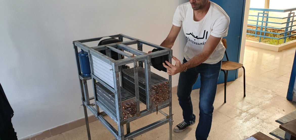Water vapour can be condensed and disinfected to produce chilled water. This is the solution provided by Kumulus, a Tunisian start-up that is receiving training support under the GIMED project, leaded by the Regional Activity Center for Sustainable Consumption and Production. The early-stage initiative is managed by Mohamed Ali Abid, an engineer specialised in renewable energy with a background of experience in power plants design, construction and commissioning. By obtaining drinking water through the humidity in the air, the project achieves an environmentally friendly alternative to traditional bottled water.